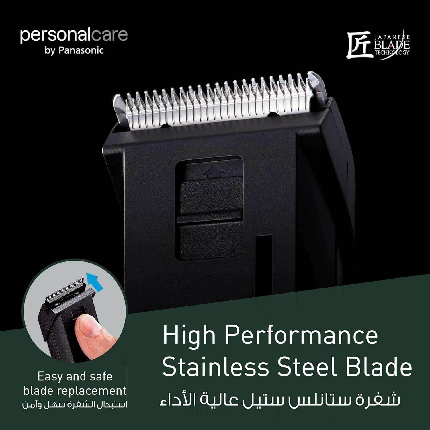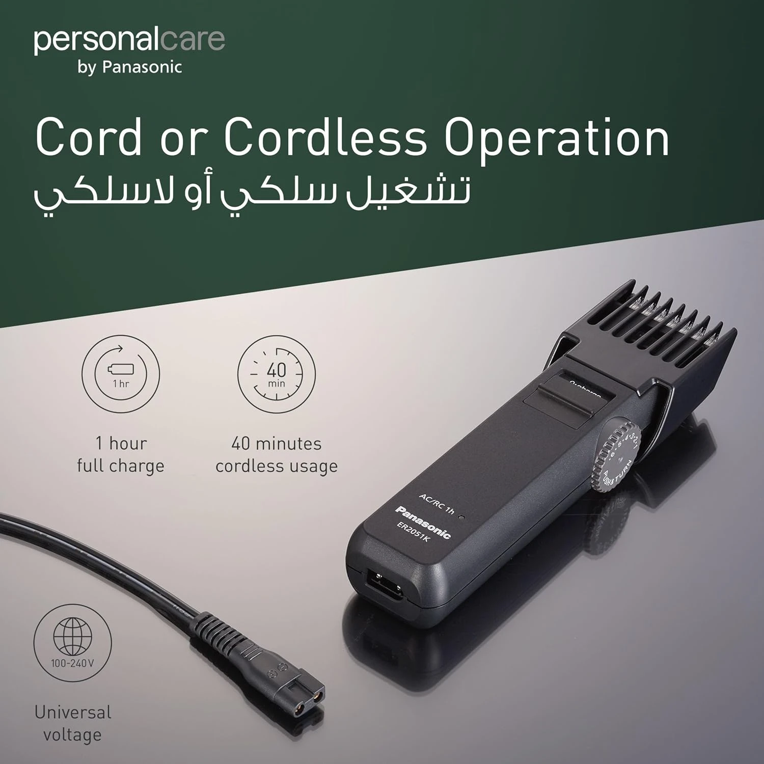 The Panasonic ER 2051K Beard and Hair Trimmer delivers precision, power, and versatility for your grooming routine. Equipped with high-performance stainless steel blades, it ensures smooth, even trimming for both beard and hair. The 12 adjustable cutting lengths (2–18mm) allow you to achieve your preferred style effortlessly with a simple quick-adjust dial, eliminating the need for multiple comb attachments. The trimmer operates corded or cordless, offering up to 40 minutes of cordless use after just 1 hour of charging. It also includes a thinning attachment for hair and a special comb for beard trimming. The easy blade replacement design ensures safe maintenance, while its ergonomic build provides comfortable handling for precise grooming every time.