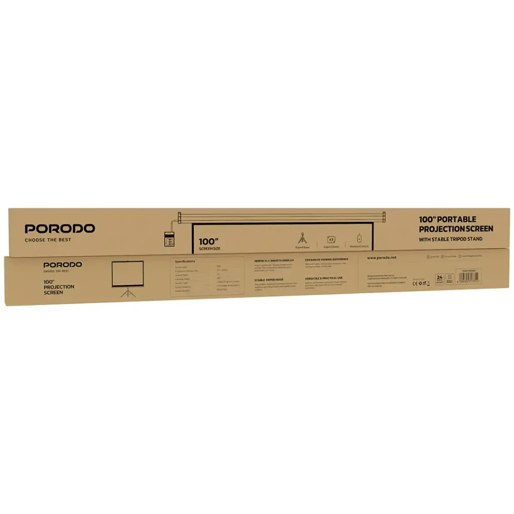Porodo 100” projector screen is a practical choice for home cinema, presentations, and meetings.