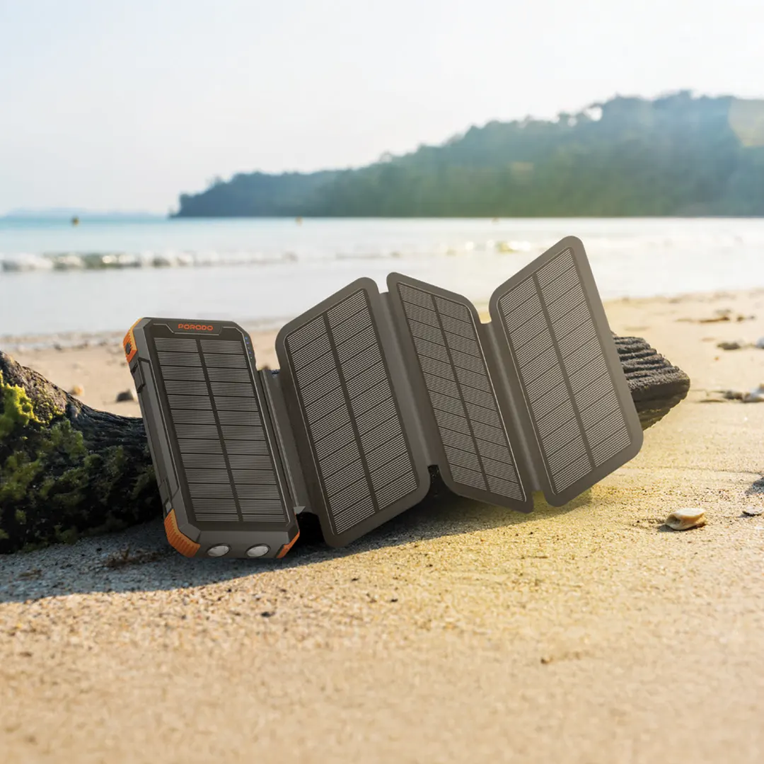 Porodo 20000mAh 4-Panel Solar Power Bank with 3 Detachable Panels & Torch Light (PB070) Black