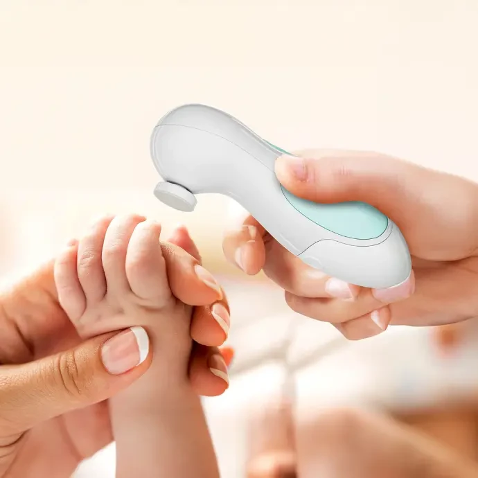 These days, cutting babies' nails is a major concern for parents. The Porodo Baby Nail Clipper Set has become an ideal solution. This product is a must-have for all ages (from toddlers to adults). This clipper features an ergonomic design with 360-degree rotation. It requires only two AAA batteries to operate. It is made of ABS and polymer, making it durable yet lightweight. The nail clipper is available in five colors with five different functions: pink for babies under three months, tusca green for babies 4-11 months, leaf green for babies 4-11 months, purple for babies 12 months and older, and silver and white for adults. This portable nail clipper features a gentle and safe feature and is specially designed to prevent injuries to babies.