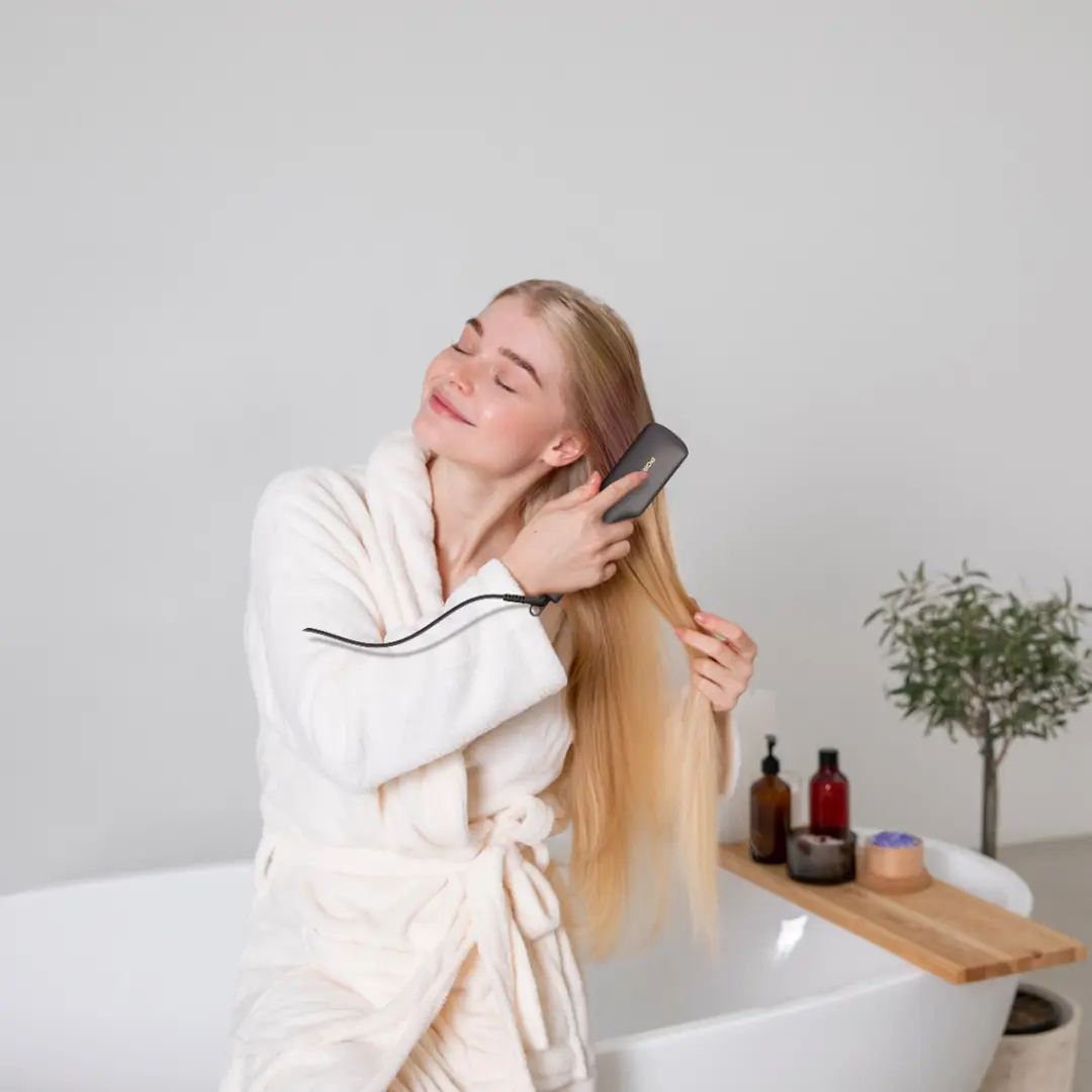 The Porodo Lifestyle Electric Heated Hair Straightener Brush is your ultimate styling buddy for getting perfectly sleek, frizz-free hair. With a powered capability of 30W and a compatible voltage range of 100-240V, it is capable of adapting to worldwide use anywhere. With a UK 3-pin plug and a 1.8m cord, it has ample extension space and convenience in styling. The brush has an instant heat time of 30 seconds, in between a temperature scale of 140°C to 200°C, and five adjustable levels to suit different hair types and styles. Its teeth are provided with anti-scalding technology to protect your scalp from being scalded and yet be comfortable and secure. Even heat is distributed through the brush to prevent damage and provide ideal results from it. With an auto-shutoff system for safety and a technology that reduces frizz by up to 70%, this straightening brush transforms your tresses with the minimum of fuss, which makes it perfect for daily wear or on-the-go touch-ups. Features : Anti-Scald Teeth Brush Even Heat Distribution Auto Shut-Off 5 Temperature Settings 30s Fast Heating 70% Frizz Reduction