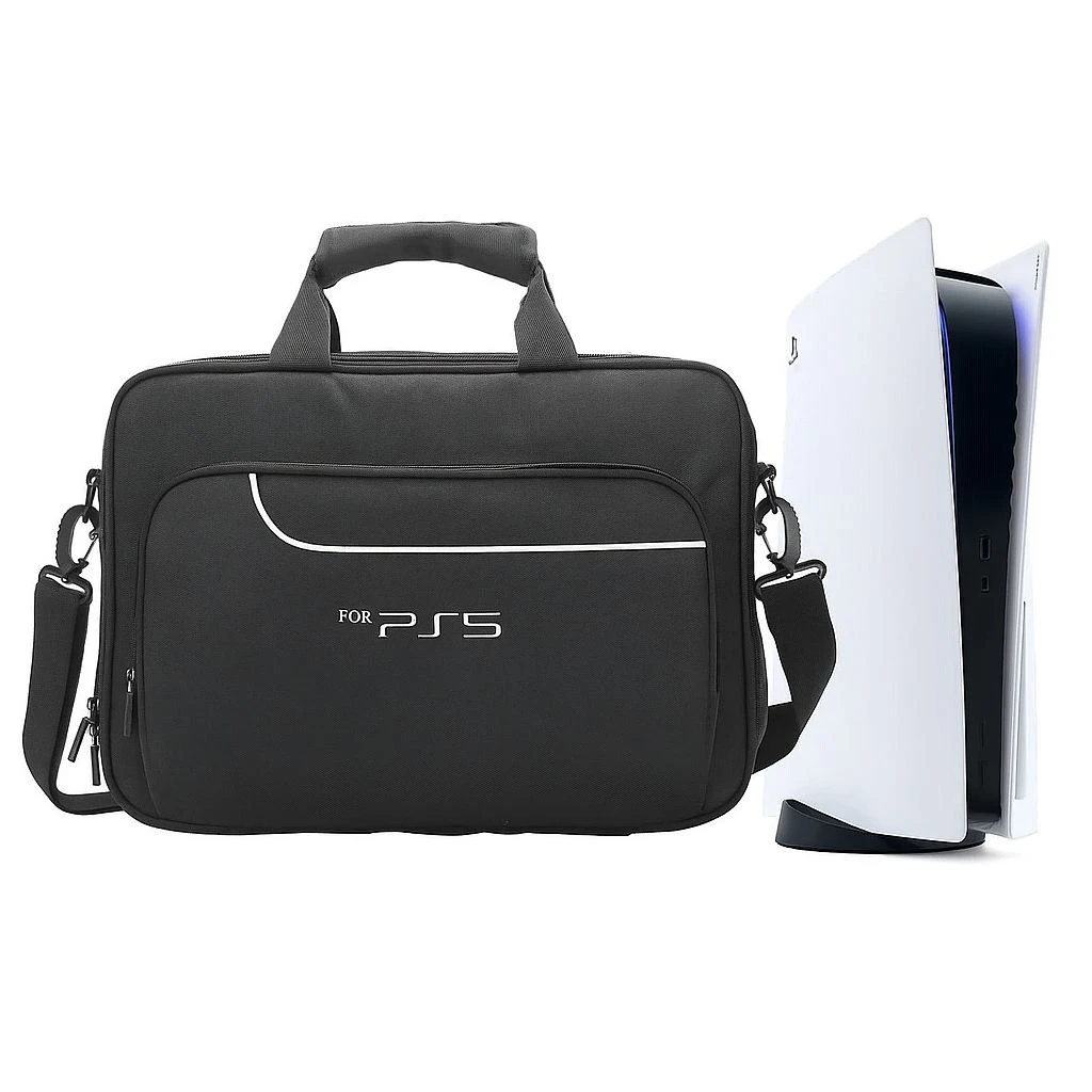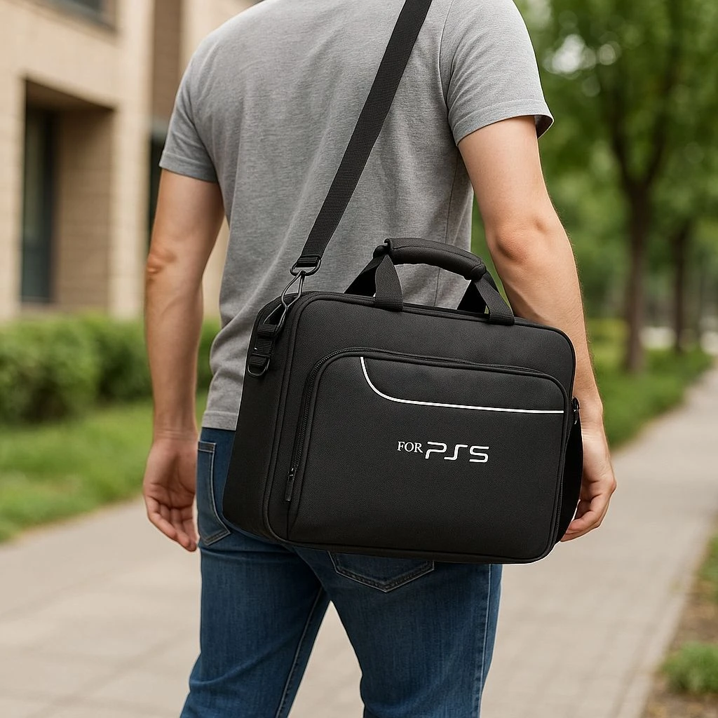 The Porodo Gaming Carrying Case Bag offers a secure and comfortable way to carry your PS5 console and accessories. Its ergonomic handle provides a firm grip for easy transport, while the secure zipper closure prevents accidental openings or damage during travel. The spacious interior accommodates the console, controllers, cables, and other gaming accessories, keeping everything organized and easy to access. Stylish yet sturdy, this carrying case is the perfect companion for PS5 gamers on the move.