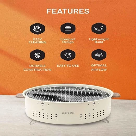 The Porodo Mini Portable Charcoal Grill brings convenience and style to your outdoor cooking experience. Designed with a compact and lightweight build, it’s perfect for picnics, camping, or backyard gatherings. Made from durable iron, it’s built to withstand outdoor conditions while ensuring long-lasting performance. Its optimized airflow system provides even heat distribution for consistent grilling results every time. Easy to set up, use, and clean, this mini grill includes essential accessories like a grill mesh, mesh tong, and grill liners — everything you need for a perfect BBQ wherever you go.