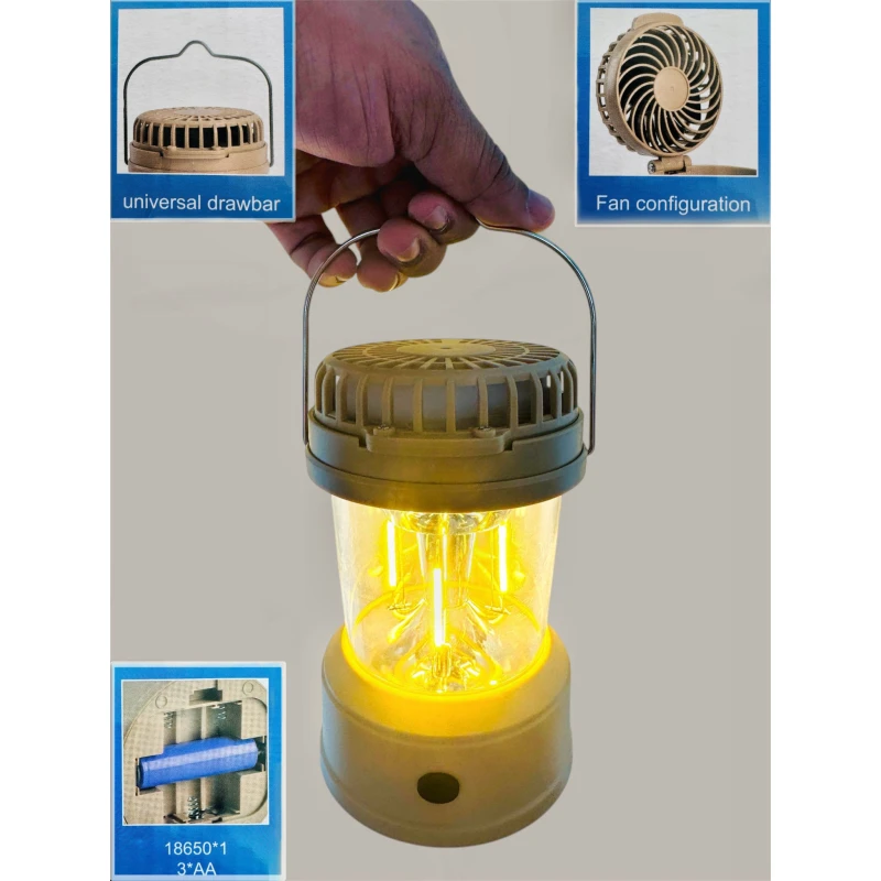 This versatile outdoor companion combines a cooling fan and bright tungsten camping light in one compact unit. Features Type-C charging, a USB port for phone charging, and runs on 3x AA batteries for flexible power options. Perfect for keeping you cool and illuminated during camping trips or power outages. Durable, portable, and CE-certified for reliable performance.