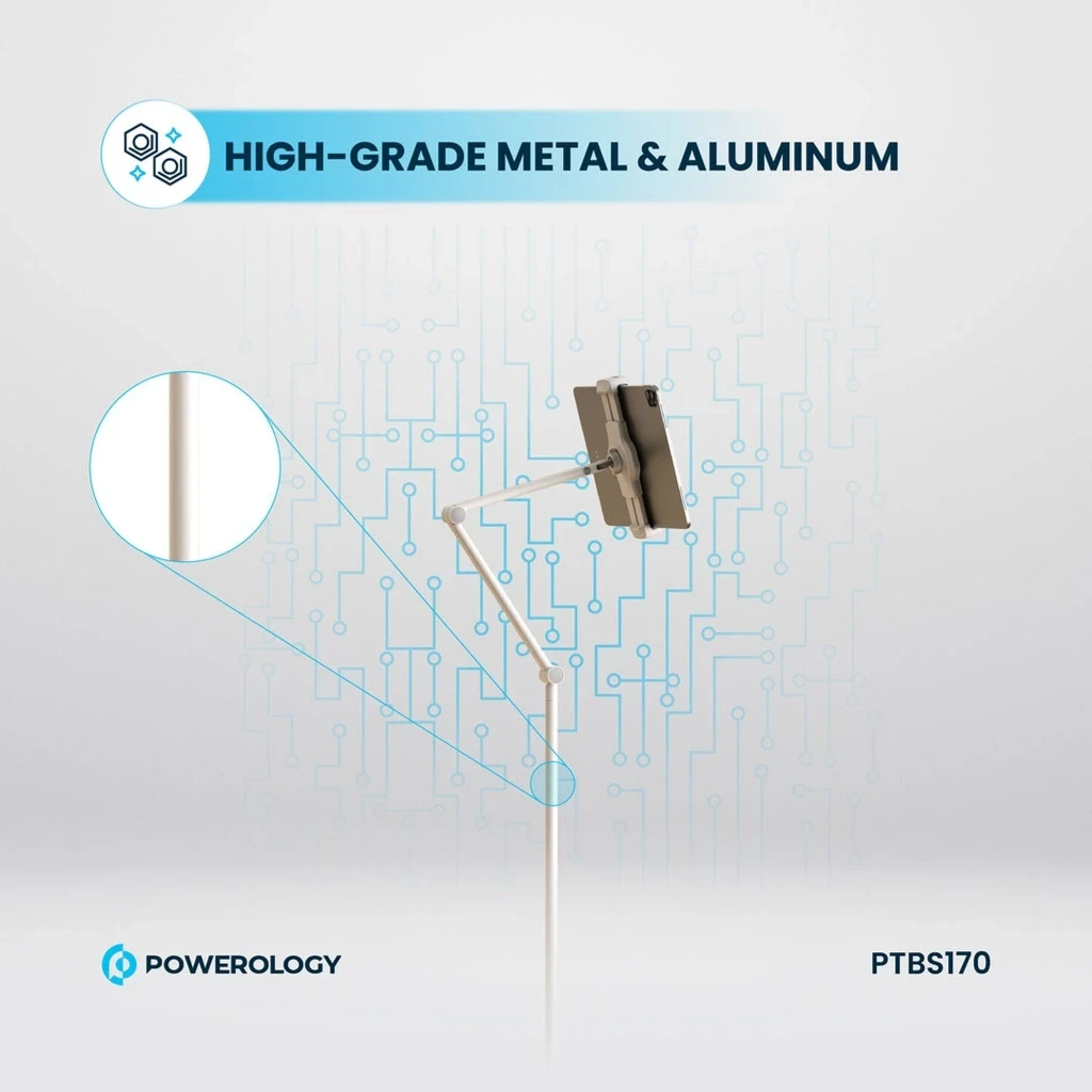 Powerology Adjustable And Rotatable Tablet Stand 170cm with Metal Base - White