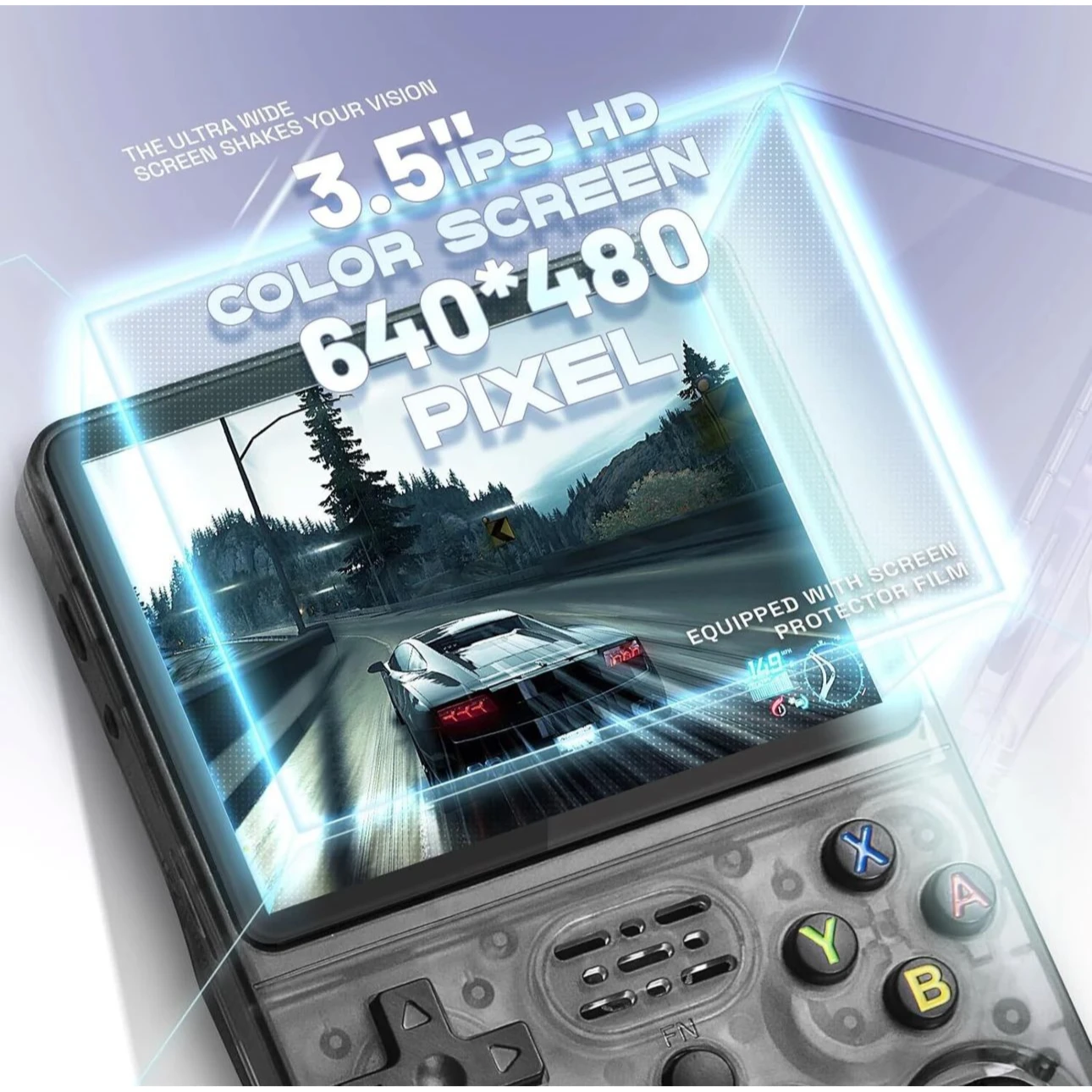 The R36S Retro Handheld Game Console is a portable gaming device designed to bring classic gaming experiences to your fingertips. Powered by a 1.5GHz RK3326 quad-core processor and 1GB of DDR3L RAM, it ensures smooth gameplay across a vast library of over 15,000 retro games. The console features a 3.5-inch HD IPS display with a 640×480 resolution, delivering vibrant and sharp visuals. With storage options of 64GB, it supports numerous emulators, allowing you to play games from systems like NES, SNES, PS1, and more. The built-in rechargeable battery offers over 5 hours of continuous play on a 2-hour charge. Additional features include a 3.5mm audio jack, built-in speaker, and USB-C charging port. Its compact dimensions (13 x 8.2 x 2.5 cm) make it an ideal companion for gaming on the go. No Wi-Fi is required—just power on and start playing, making it a perfect gift for gamers and a nostalgic trip down memory lane.
