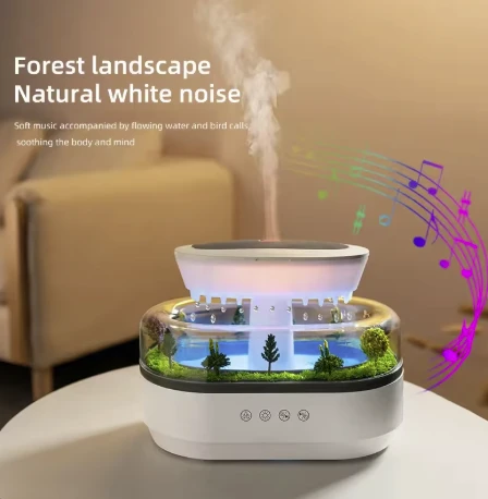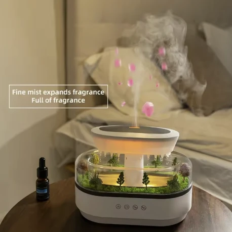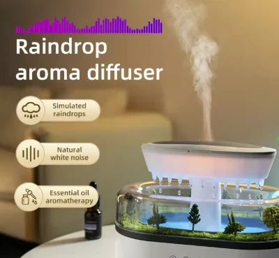 The RainDrop Aroma Diffuser -286 Model Rain Cloud Humidifier is a versatile and multifunctional device designed to elevate your home or office environment. Combining a humidifier, aromatherapy diffuser, and night light, it helps maintain moisture in dry air, infuse the space with pleasant essential oils, and create a soothing ambiance with seven color-changing light options. The device also features relaxing raindrop sound effects, promoting tranquility for relaxation, sleep, or meditation. With a capacity of 13.5 oz, it’s perfect for bedrooms, offices, or nurseries. Its sleek, modern rain cloud design adds an elegant touch to any space, making it a thoughtful gift choice. Made from durable polypropylene and ABS materials, this humidifier promotes better air quality, a calming atmosphere, and a peaceful sleep environment.