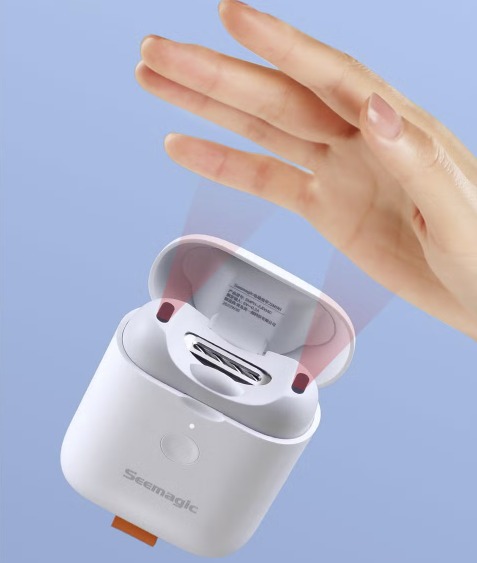 One-click to automatic trim, and with the super small blade clearance. The nail will be polished smooth while cutting. D-eyes safety protection technique is newly added, and the blade would stop working automatically when contacts foreign object which is more secure. The use of centrifugal force makes it easy to suck in nail debris without splash, which is more clean. Auxiliary light is added to the blade, making it easier to use at night. You can trim your nails anytime and anywhere for its small size and being portable, and it is comfortable for one-handed operation. Full of magnetic force, the magnetic cover design helps open and close it more easily by one hand.