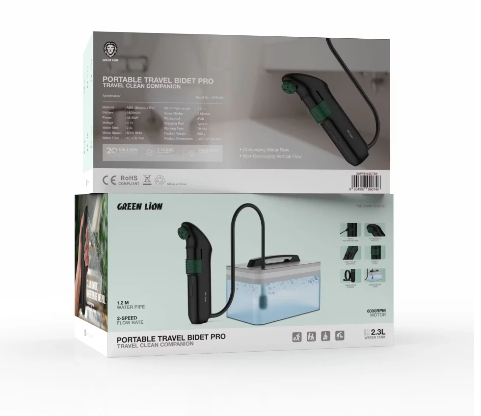 Portable Bidet Pro is a reliable hygiene companion for travel, camping, and daily use. It features a 2.3L water tank with a free-flowing spray and a powerful motor designed to maintain steady performance. With two spray modes, adjustable nozzle positioning, and a long 1.2m water pipe, it offers flexible and comfortable cleaning wherever you are. The IPX6 waterproof design and USB-C (Type-C) charging make it practical and easy to use on the go.