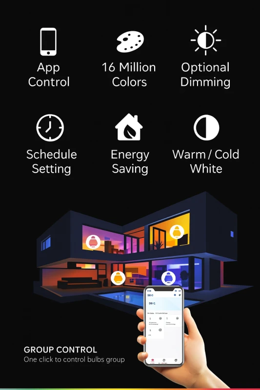 Compatible with WiFi networks, the Smart LED Bulb connects seamlessly through the Tuya Smart or Smart Life App, making your lighting experience smarter, simpler, and more colorful.