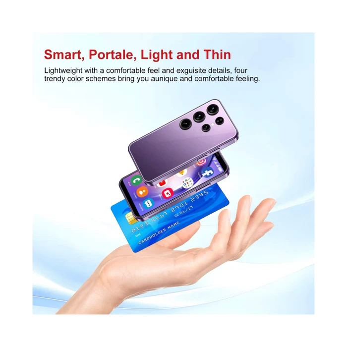 Soyes S25 Ultra Mini Smartphone Special Edition 3.3-inch touchscreen, dual SIM 2GB RAM 16GB ROM, 1000mAh, 0.3 MP + 2 MP camera, Android 8.1 & ultra slim phone. 3.3-Inch Touchscreen: Enjoy clear and responsive touch navigation in a compact form factor. Dual SIM Capability: Manage personal and work contacts seamlessly with dual SIM support. Efficient Performance: Powered by 2GB RAM and 16GB ROM, running Android 8.1 for smooth multitasking Essential Features for Everyday Use: 3G connectivity, 1000mAh battery, and front (0.3 MP) & rear (2 MP) cameras make it an affordable, entry-level mobile device.