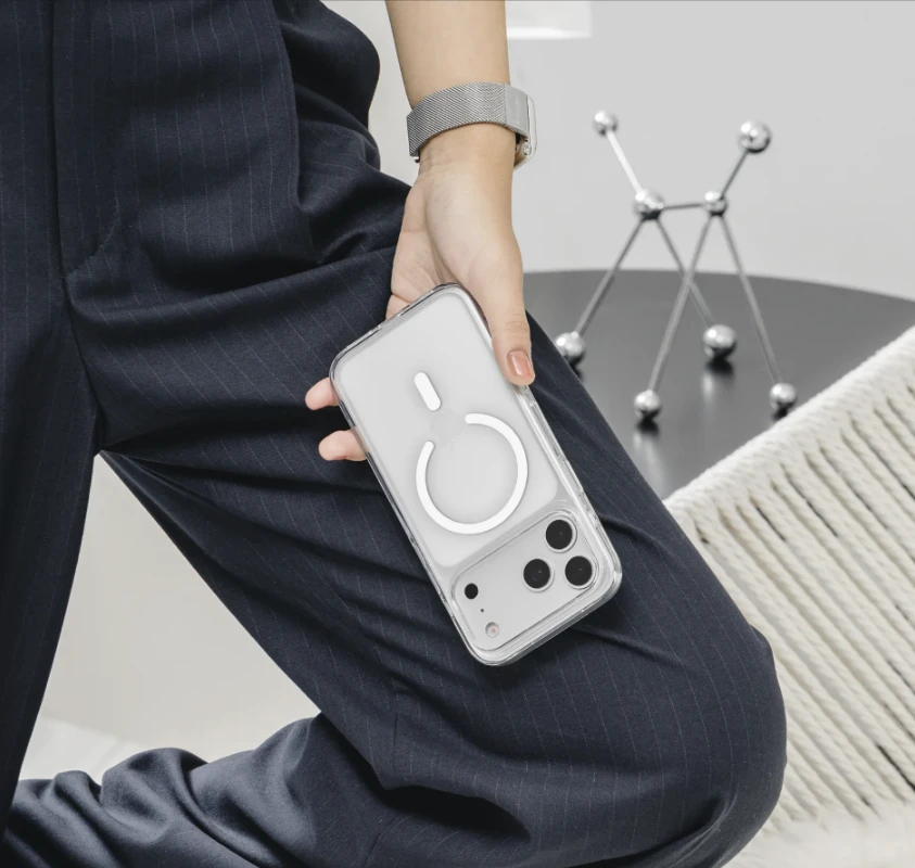 The SwitchEasy Crush Protective Clear Case delivers a perfect balance of style and durability. With 85% high light transmittance, it maintains crystal-clear transparency that restores your device’s original colors. Featuring AIR-BARRIER technology, the case creates a 0.3mm air cushion that absorbs impact, prevents water ripple formation, and removes the need for dot matrix patterns—ensuring true clarity. Certified with U.S. military-grade drop protection, it withstands drops from up to 16 feet. Raised camera control cutouts ensure precision and comfort while keeping your lens safe. Built-in magnetic ring ensures compatibility with the full range of MagSafe accessories.