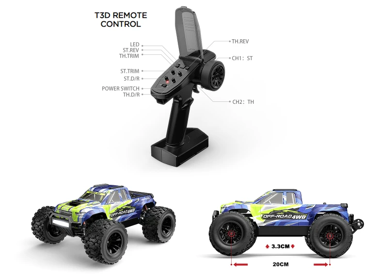 Remote control: 2.4GHz system (T3D transmitter; some versions include gyro stability)