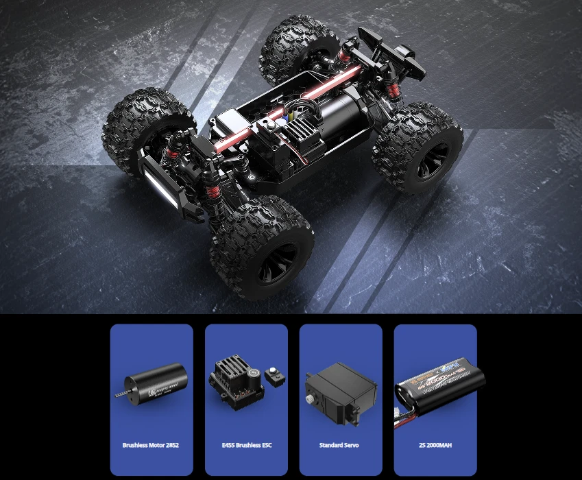 The MJX Hyper Go 14208 is a tough, RTR brushless off-road truck built for strong performance at a great value. With a metal-reinforced chassis, full-metal drivetrain parts, and adjustable oil shocks, it delivers fast acceleration, stable handling, and confidence on dirt, gravel, and grass—while still being beginner-friendly.
