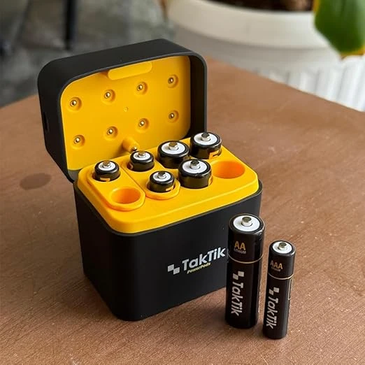 The TakTik PowerPods AA & AAA Batteries with Charging Case is a smart and portable charging kit that comes with 8 rechargeable lithium batteries (4 AA and 4 AAA). The compact USB-C dock allows fast charging of all batteries at once, while the sleek magnetic case keeps them neat and organized. Lightweight and travel-friendly, this eco-conscious solution reduces single-use waste and provides reliable power for your daily devices like remotes, cameras, toys, and more.
