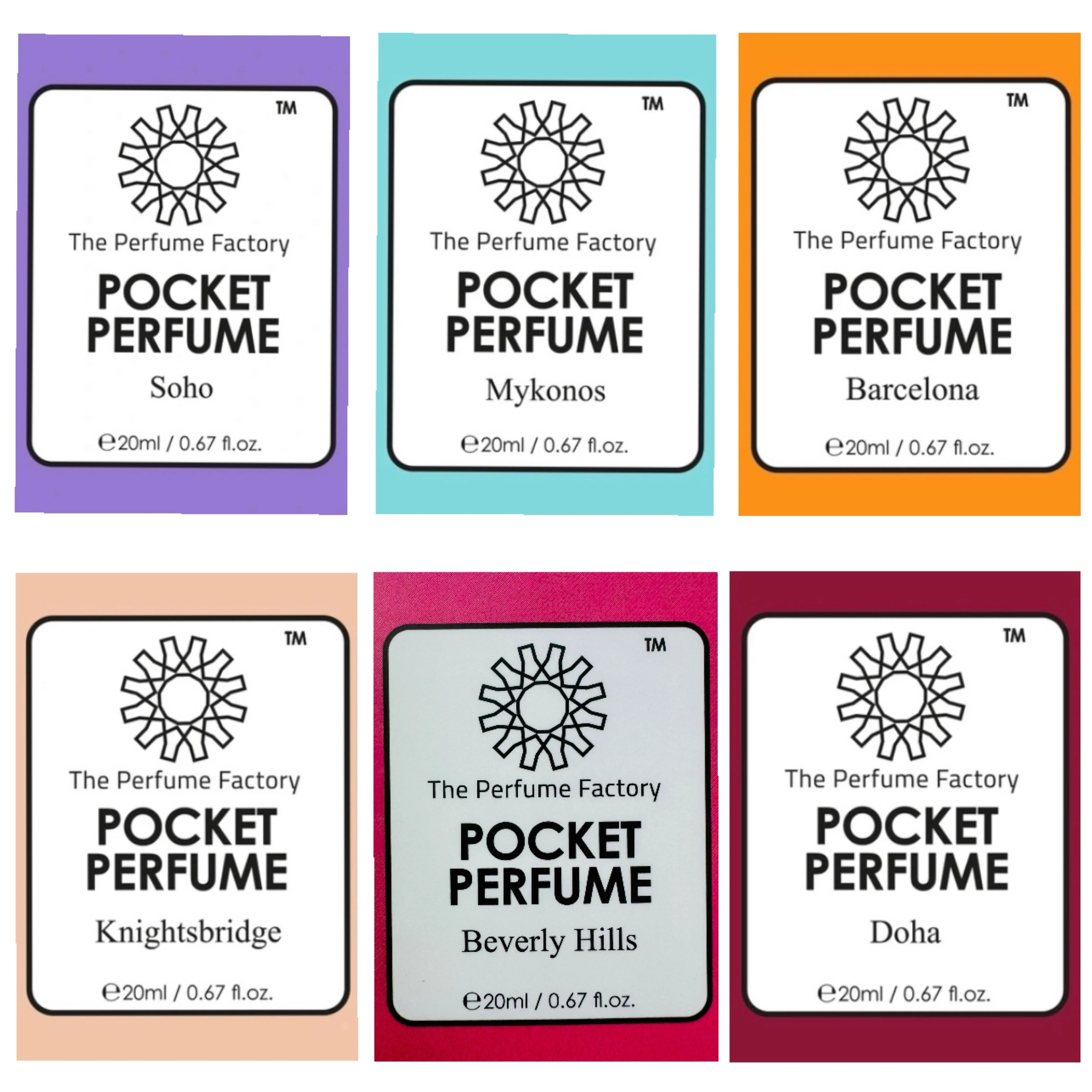 Experience luxury on the go with The Perfume Factory Pocket Perfume. Designed for convenience, this compact 20ml fragrance spray fits effortlessly in your pocket, purse, or travel bag, ensuring you stay fresh anytime, anywhere.