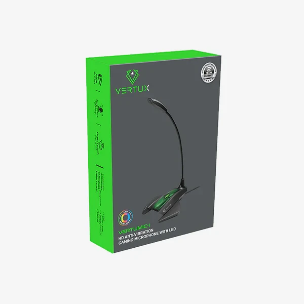 The Vertux Vertumic-1 is a high-definition anti-vibration gaming microphone designed to capture clear, professional-quality sound. Ideal for podcasting, vlogging, game streaming, Skype calls, and voice-over work, its omnidirectional design reduces interference and enhances voice richness for crisp recordings. Featuring an LED indicator and flexible 3.5mm/USB connectivity, the Vertumic-1 keeps you focused and sounding your best during every broadcast or gaming session.