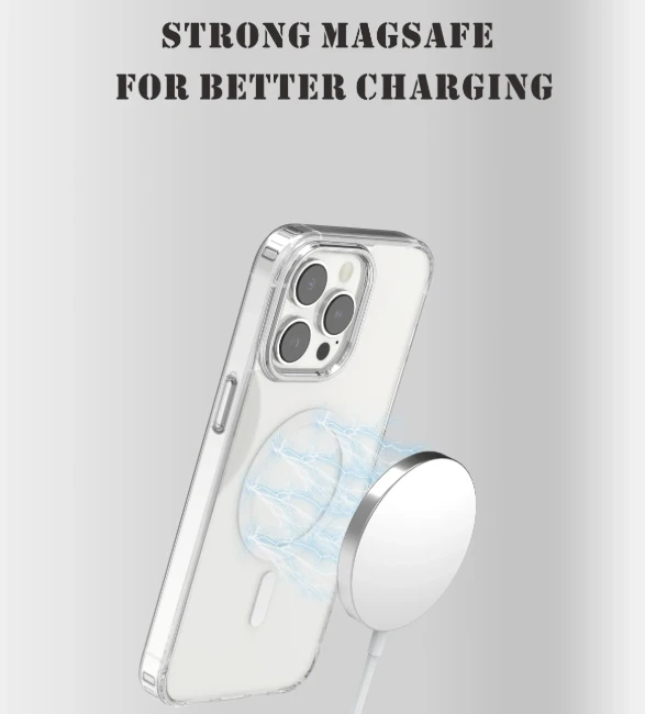 The Wizard Crystal Clear MagSafe Case is designed to preserve the original look and feel of your iPhone while delivering reliable protection and strong magnetic performance. With its ultra-slim, lightweight structure, it maintains the natural bare-device hand-feel, keeping your phone sleek and comfortable to hold. The shock-absorbing design, reinforced with an inner airbag system, provides enhanced drop protection by dispersing impact effectively. Raised edges around the camera and screen keep them safe from scratches and daily wear. Built-in magnets ensure strong MagSafe alignment, offering secure attachment for chargers and accessories with perfect precision.