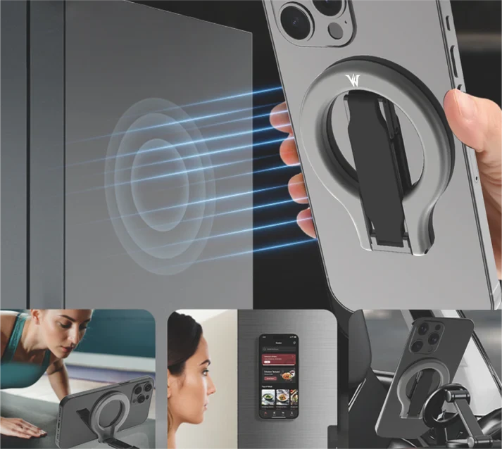 Ultimate 360° Viewing Flexibility Flexible Angle Adjustment: Enjoy 360° rotation for comfortable viewing in any position, whether at home or on the go. Strong Magnetic Adsorption: The secure magnetic design allows stable attachment to compatible devices and surfaces. Reliable and Comfortable Grip Hand-Care Grip Design: Firm yet comfortable, providing a secure hold to prevent accidental drops. Car Holder Compatibility: Easily compatible with car mounts, making it perfect for travel and navigation. Specifications Features: 360° rotation, magnetic adsorption, secure hand-grip Compatibility: Works with magnetic car holders and devices with MagSafe compatibilityUltimate 360° Viewing Flexibility Flexible Angle Adjustment: Enjoy 360° rotation for comfortable viewing in any position, whether at home or on the go. Strong Magnetic Adsorption: The secure magnetic design allows stable attachment to compatible devices and surfaces. Reliable and Comfortable Grip Hand-Care Grip Design: Firm yet comfortable, providing a secure hold to prevent accidental drops. Car Holder Compatibility: Easily compatible with car mounts, making it perfect for travel and navigation. Specifications Features: 360° rotation, magnetic adsorption, secure hand-grip Compatibility: Works with magnetic car holders and devices with MagSafe compatibility