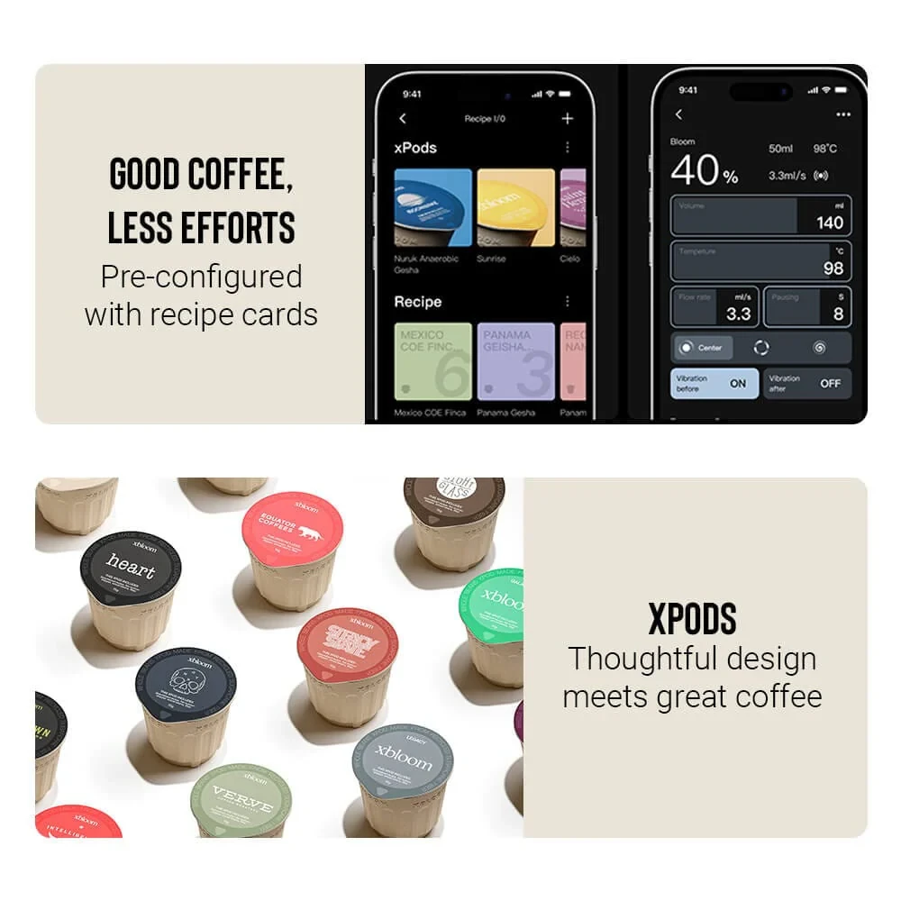 Experience next-level coffee brewing with the xBloom Studio, the ultimate all-in-one coffee system designed for perfection. This innovative machine integrates a grinder, brewer, and precision scale into one intelligent device that delivers barista-level coffee at home. With 80 adjustable grind settings, instant water heating, and three brewing modes — Autopilot, Copilot, and Freesolo — it gives you total control over every brew. NFC recipe cards and app connectivity let you access a world of brewing recipes and customization options. Made from premium materials and engineered for precision, the xBloom Studio transforms your daily cup into an exceptional experience.
