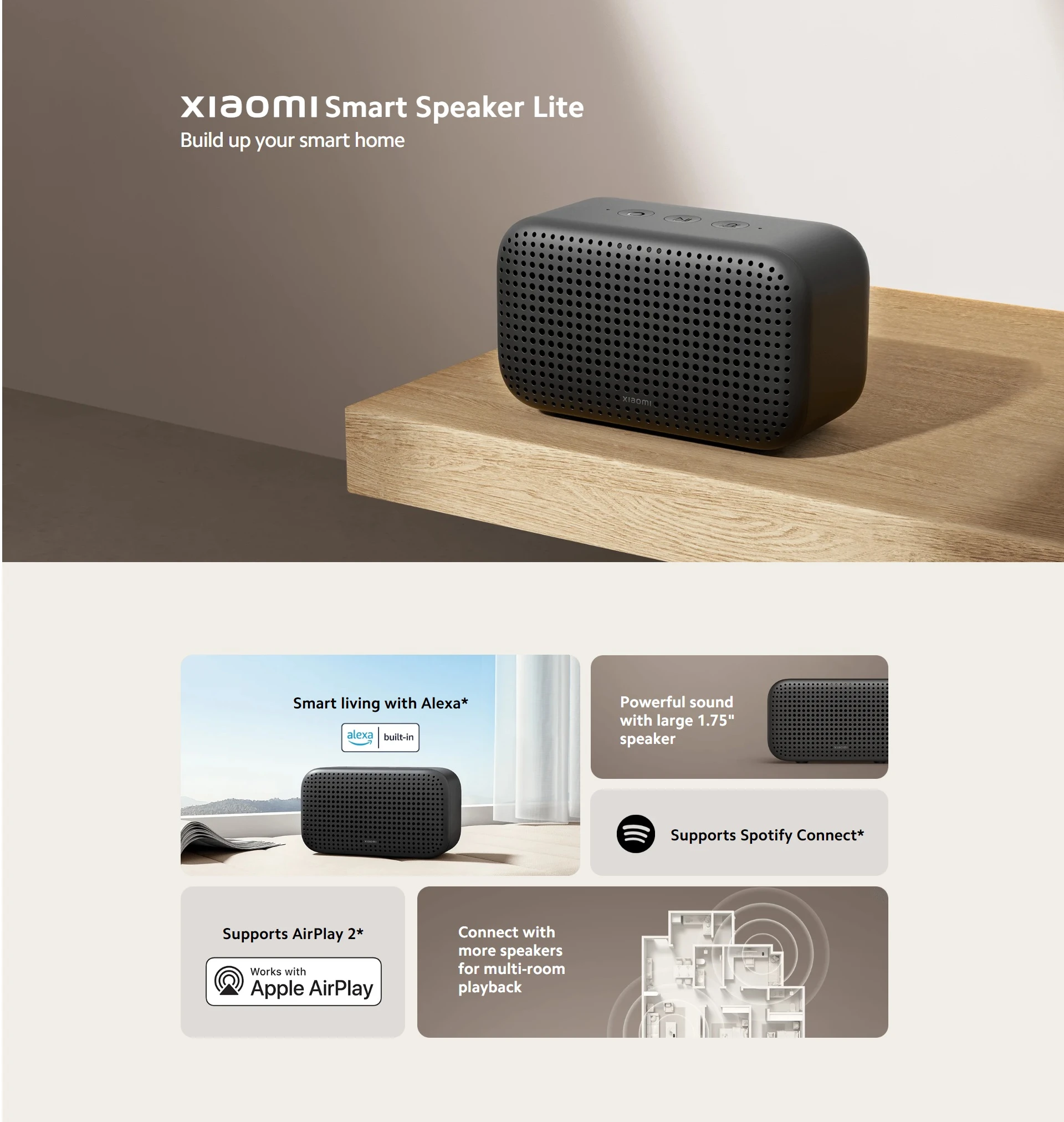 • Multi-room playback with Alexa and AirPlay 2 support.