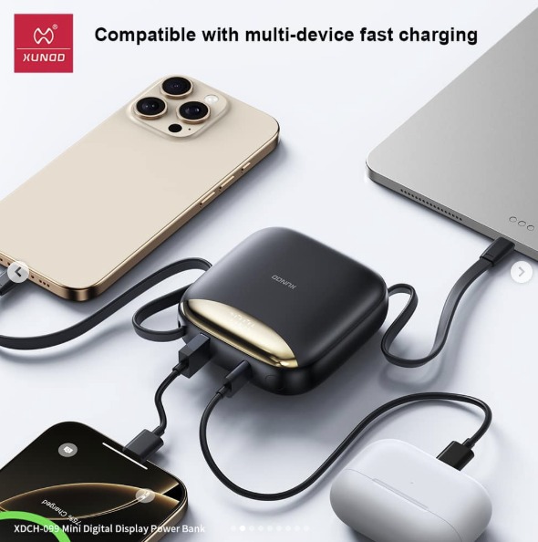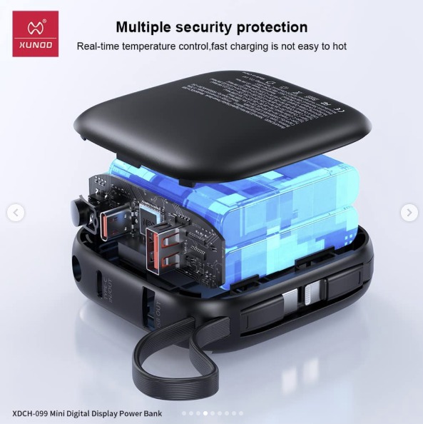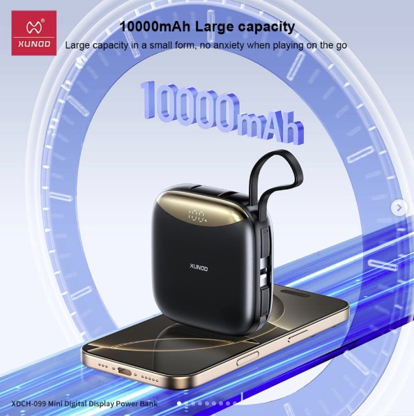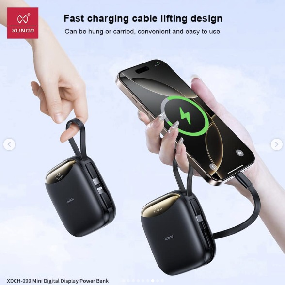 Compact, powerful, and designed for convenience, the XUNDD XDCH-99 Power Bank is your perfect on-the-go charging solution. With a high-capacity 10000mAh battery, smart digital display, and built-in fast charging cables, it delivers reliable energy and effortless portability wherever you go. Key Features: 10000mAh high-capacity battery Built-in dual fast charging cables (Type-C & Lightning) 22.5W fast charging output LED digital battery display Compact and travel-friendly design Multiple safety protections (temperature & overload control)