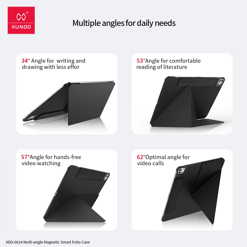 Protect your iPad with style and functionality using the XUNDD Magnetic Smart Folio Case. Crafted from premium PC+PU material, this case ensures durable protection against scratches and bumps while keeping your iPad slim and lightweight. The magnetic design supports auto sleep/wake and provides a secure hold, while the foldable X-cover stand offers multiple viewing angles for comfort in any situation. With a raised camera lip and magnetic pen holder, it’s built to match your daily needs.