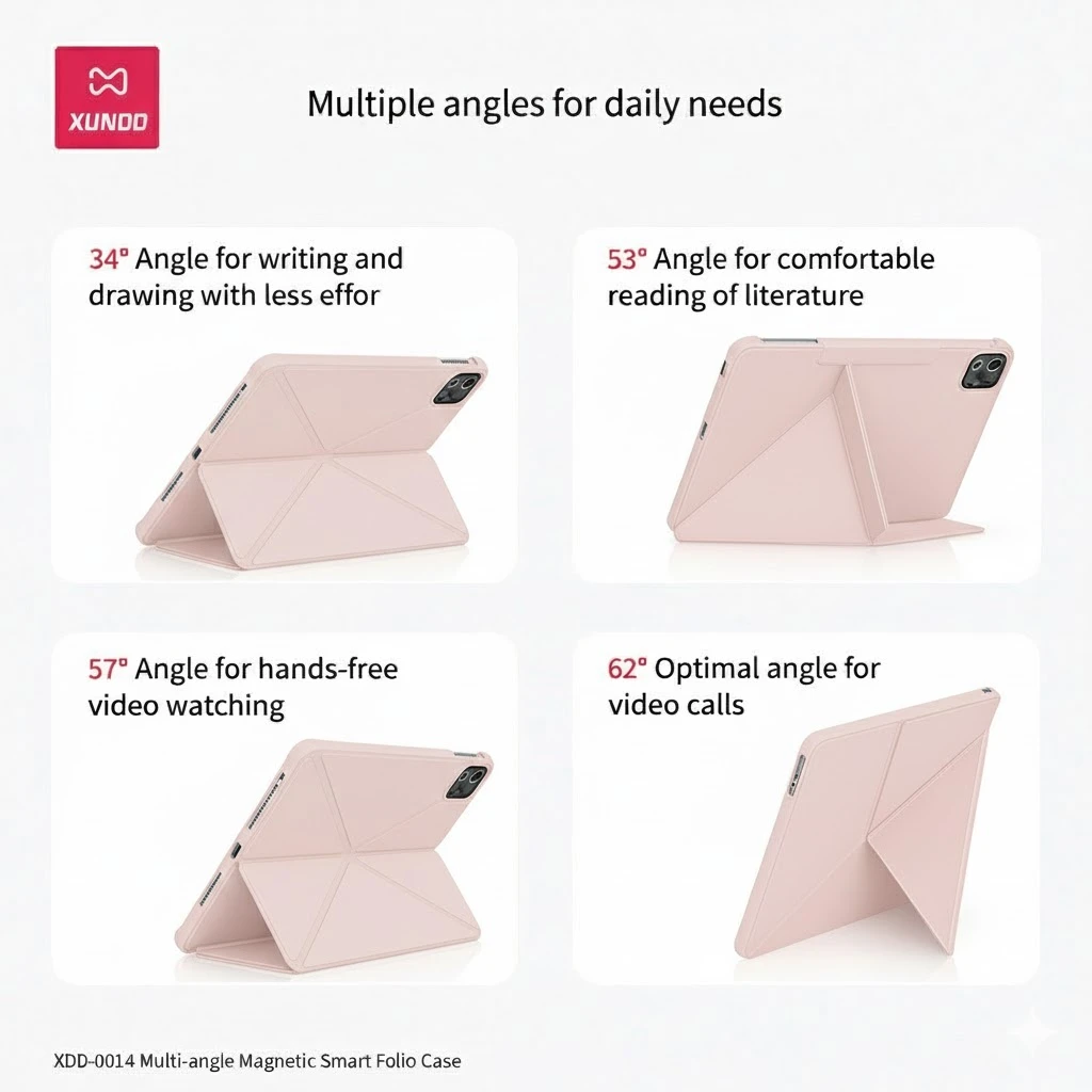 Protect your iPad with style and functionality using the XUNDD Magnetic Smart Folio Case. Crafted from premium PC+PU material, this case ensures durable protection against scratches and bumps while keeping your iPad slim and lightweight. The magnetic design supports auto sleep/wake and provides a secure hold, while the foldable X-cover stand offers multiple viewing angles for comfort in any situation. With a raised camera lip and magnetic pen holder, it’s built to match your daily needs.