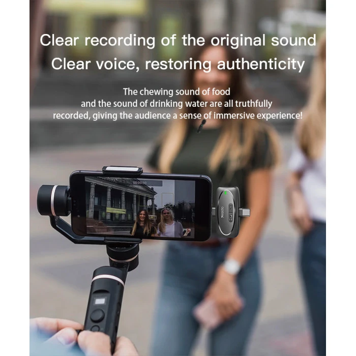 A compact wireless lavalier mic made for clear voice recording on USB-C devices.